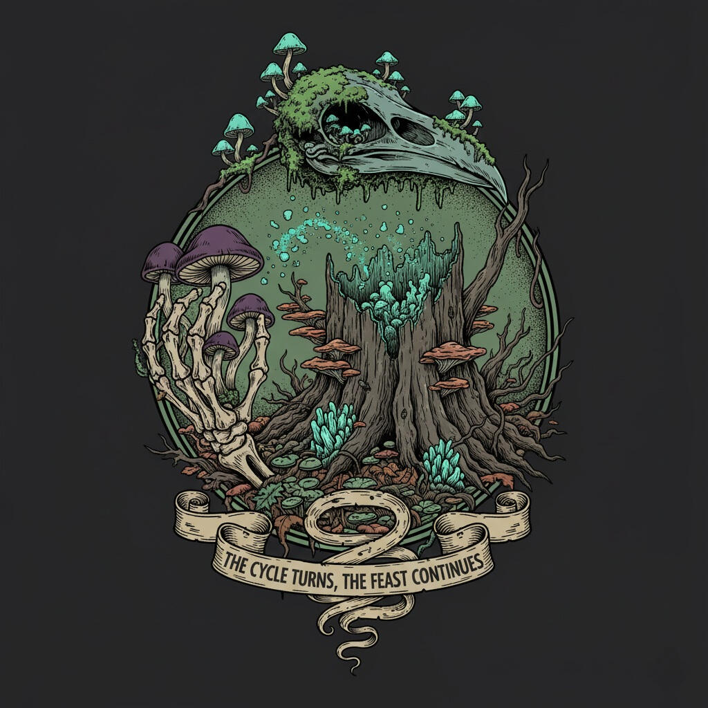 most of these songs aren’t lectures about entropy or ecology- they’re field notes from inside a world where that pattern is always humming underneath. I write about awe in nature, consciousness , grief, sedimental souls, human constructs rotting and composting into something stranger. I’m not beholden to any one genre or doctrine anything that lights my heart on fire goes in; The God who eats is just the lens that keeps it all connected.if you want to feel the patterns vibrate through you click here